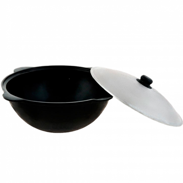 Узбекский казан из Наманга выполнен гладким литьем с толстыми стенками. Казан объемом 10 литров с круглым наружним дном имеет по бокам четыре литые ручки. В комплект входит крышка, которая во время приготовления способствует сохранению необходимой температуры внутри казана, благодаря чему сохраняются все полезные свойства продуктов. Узбекский казан можно использовать как на открытом огне, так и на плите, в духовке, в печи.