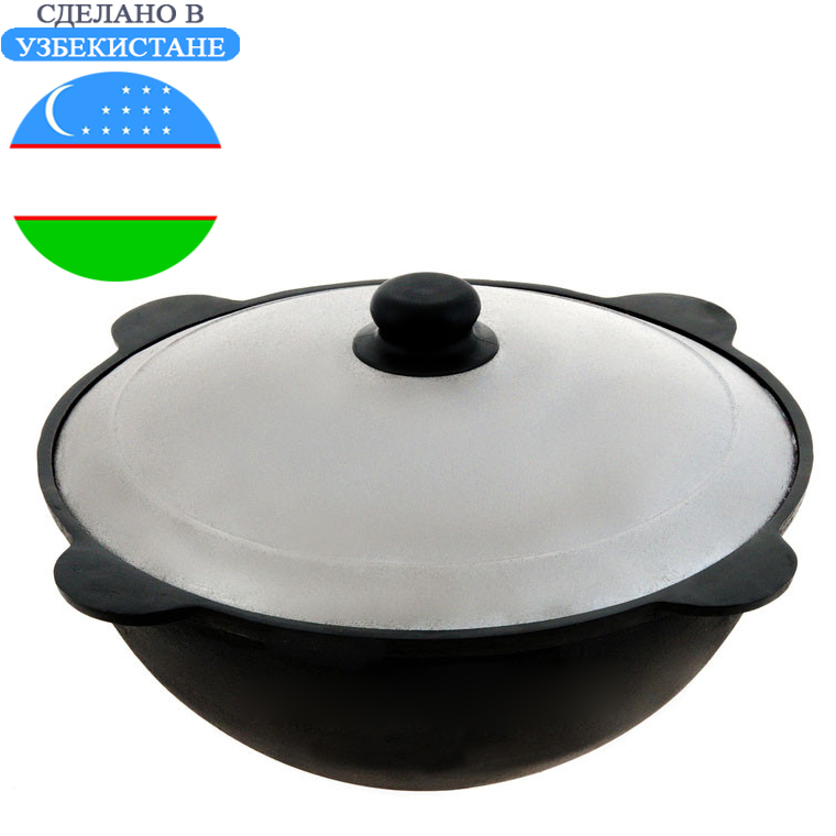Узбекский казан выполнен гладким литьем с толстыми стенками, плоским дном и имеет по бокам четыре ручки. В комплект входит крышка, которая во время приготовления способствует сохранению необходимой температуры внутри казана, благодаря чему сохраняются все полезные свойства продуктов. Узбекский казан можно использовать как на открытом огне, так и на плите, в духовке, в печи.